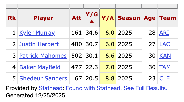 On top of this, I have been very impressed with Shedeur's mobility. He has always been quite mobile for a pocket passer, and I think this has been his best trait this season.